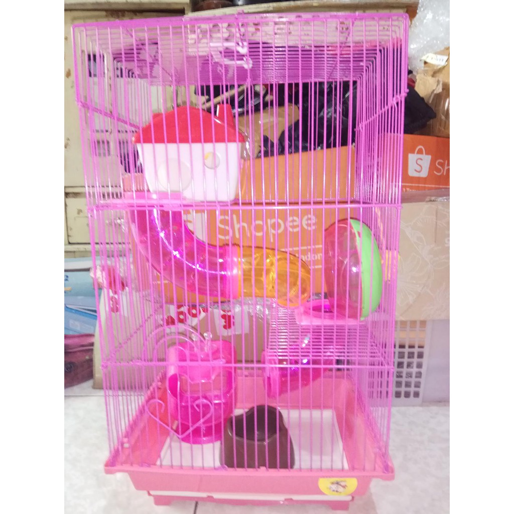 Kandang Hamster Besar 3 Tingkat Lengkap Dengan Terowongan Warna Pink Shopee Indonesia
